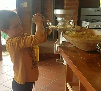 Con respecto a la finca familiar donde estamos instalados durante esta cuarentena, mi papi siempre ha dicho que “lo mejor y único que produce es placer”. Pese a la tierra prodigiosa de nuestro país, mis papis no han logrado tener éxito como agricultores, pues no lo son. Pero en esta cuarentena, este lugar ha sido especialmente productivo. Seguramente es una señal de que en la nueva etapa que se nos viene, el campo adquirirá aún más importancia. Hemos tenido la oportunidad no sólo de compartir tiempo en este lugar privilegiado, sino también de trabajar juntos en una huerta y en la organización de la finca en general. Mis hijos han tenido aprendizajes más allá del homeschooling: sembrar, cosechar, desgranar y moler maíz, hacer leña, ayudar en la casa y en la cocina, vivir en comunidad, entre muchas otras.
